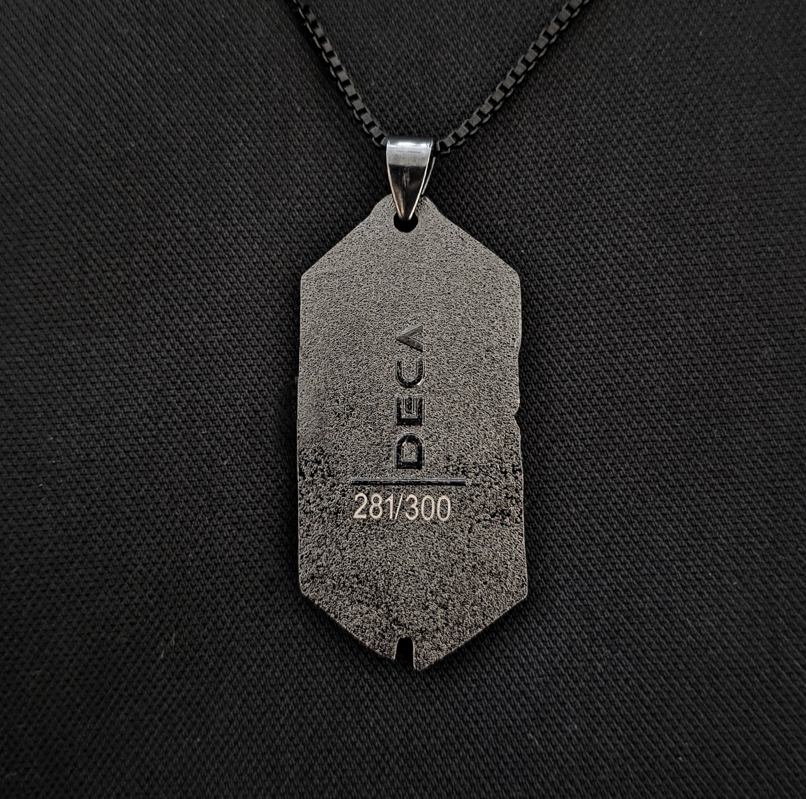 The DECA production method is defined by precision-cut geometry and composite metal finishing. Each object is produced as a fixed edition and individually marked.